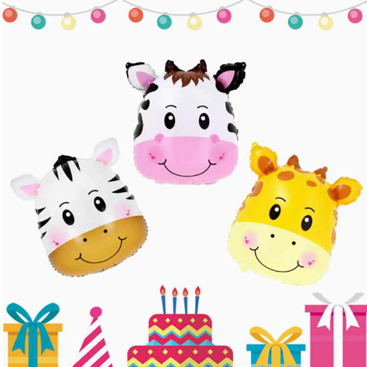 В фольгированном воздушном шаре с мультяшной головой животного используется технология печати высокой четкости, что приводит к ярким цветам и восстановлению милого образа животного. Они содержат различных животных, таких как резиновые утки, панды, жирафы, лисы, слоны, зебры и кролики, оформленные на разные темы.