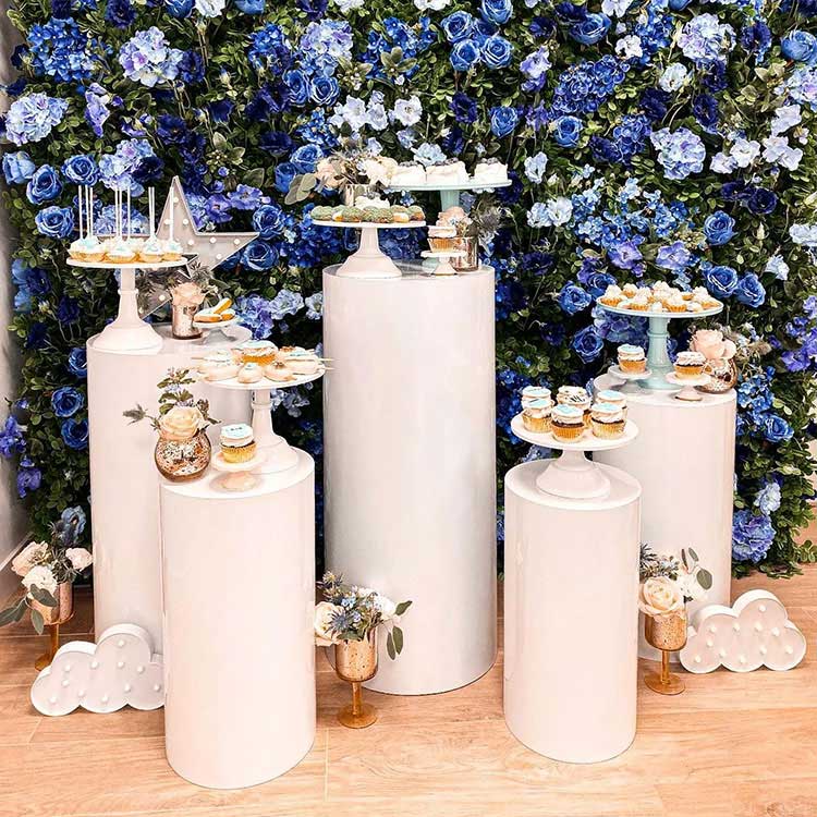 Набор гирлянд из воздушных шаров Night Blue и Ice BlueДесертный стол с цилиндрическим основанием служит одновременно контейнером и украшением. Обычно они бывают различных комбинаций: комбинации из 3 частей, комбинации из 5 частей, комбинации из 7 частей и так далее. Самая распространенная комбинация – пять штук. Независимые цилиндрические трубы разных размеров можно гибко компоновать, и они являются важной частью сцены. В то же время мы также предлагаем настройку по размеру и форме. Более того, они подойдут к оформлению вашей вечеринки.