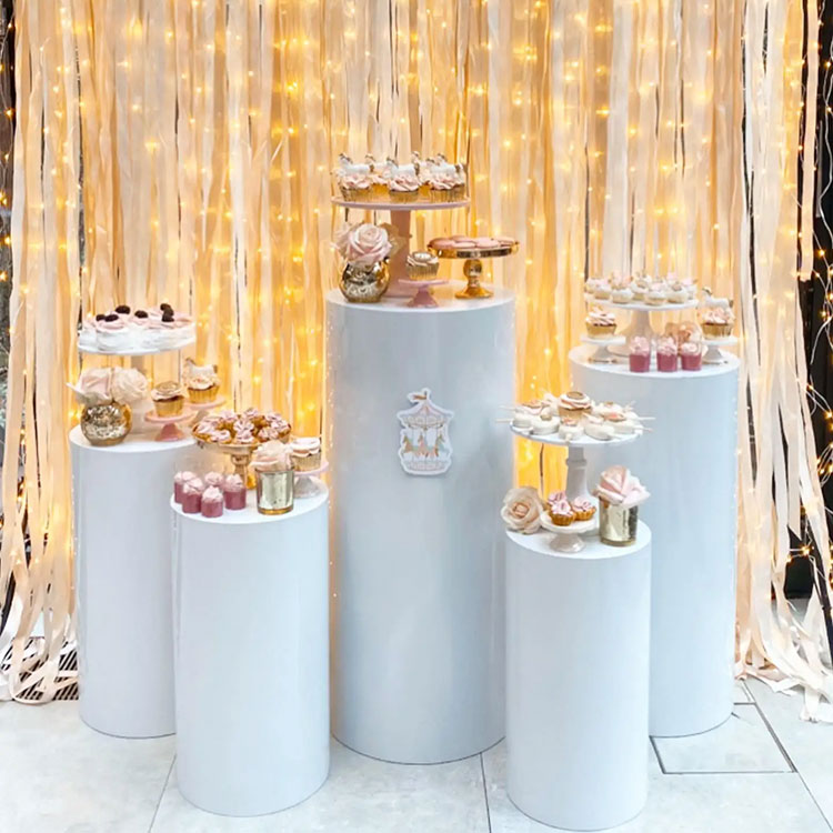 Цилиндрический десертный стол можно использовать на вечеринках, свадьбах, днях рождения, а предприятия также могут использовать его для демонстрации произведений искусства, цветов, ювелирных изделий и так далее.