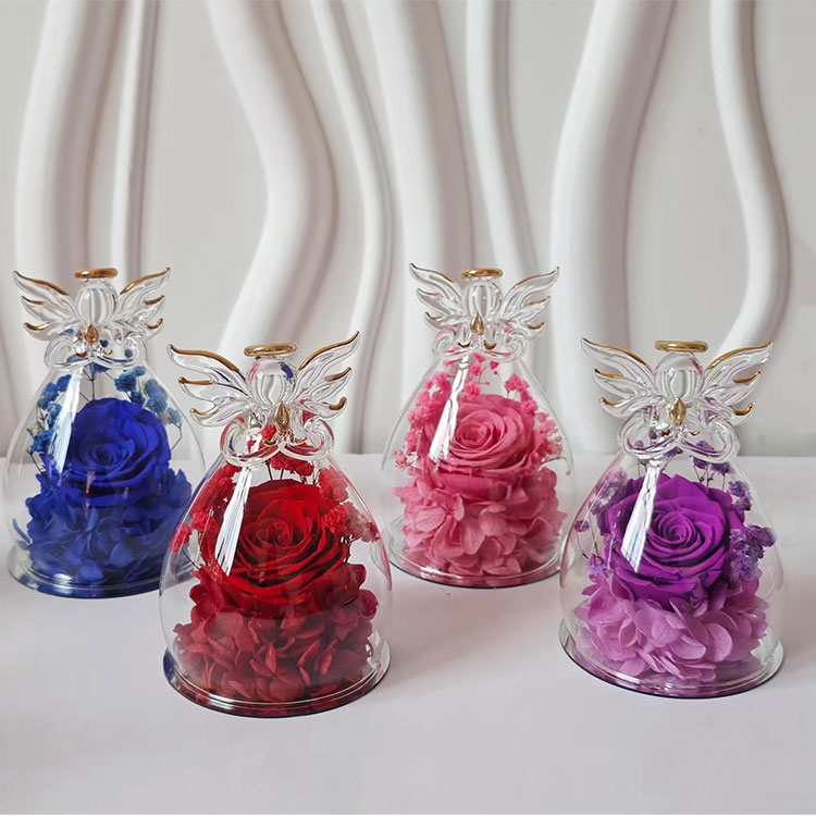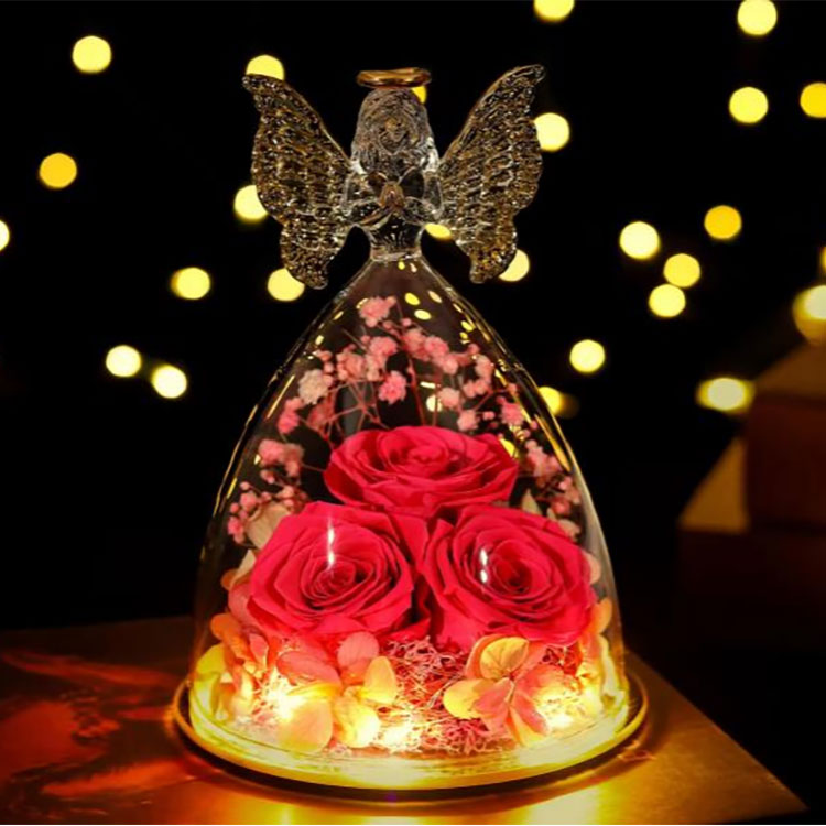 Наш стеклянный ангел сохранил подарок в форме цветка, поддерживая OEM и ODM.