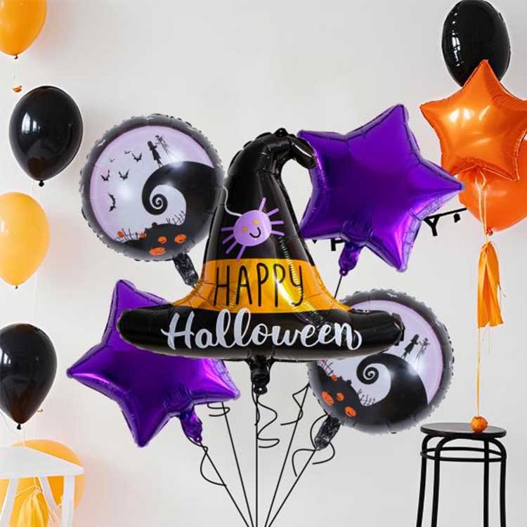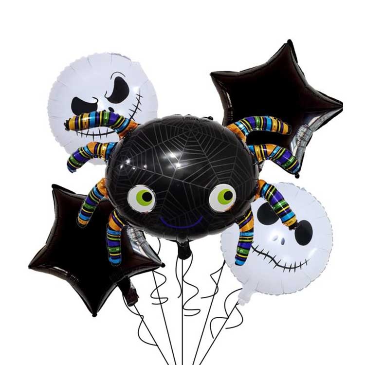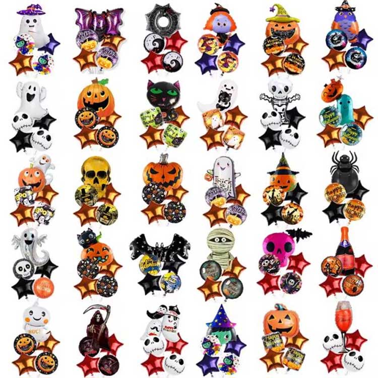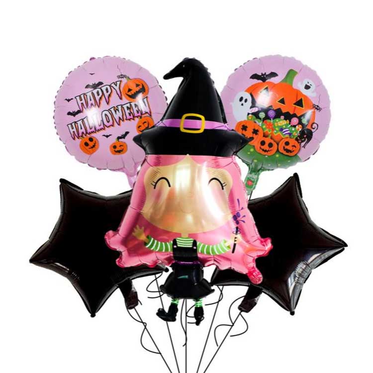 Набор из пяти предметов для Хэллоуина — это набор воздушных шаров, специально разработанный для Хэллоуина. Обычно он состоит из фольгированных шаров, латексных шаров и других аксессуаров. Всего он включает в себя пять типов воздушных шаров! В каждом наборе есть узор или персонаж, который идеально соответствует теме Хэллоуина. Идеально подходит для украшения Хэллоуина: вы даже можете наполнить воздушные шары гелием, чтобы они летали! Это поистине усиливает загадочную атмосферу Хэллоуина!