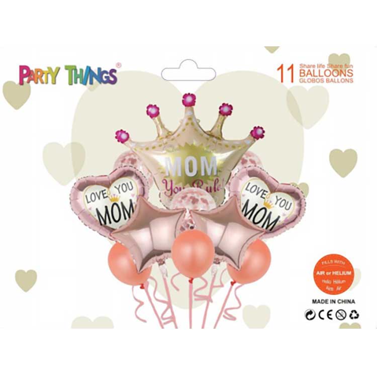 Каждый из наших наборов воздушных шаров ко Дню матери индивидуально упакован в картонную коробку. Это предотвращает повреждение воздушных шаров во время транспортировки и гарантирует их доставку в целости и сохранности. На внешней упаковке содержится информация о продукте и изображения, позволяющие легко понять продукт с первого взгляда. Дизайн упаковки простой и удобный.
