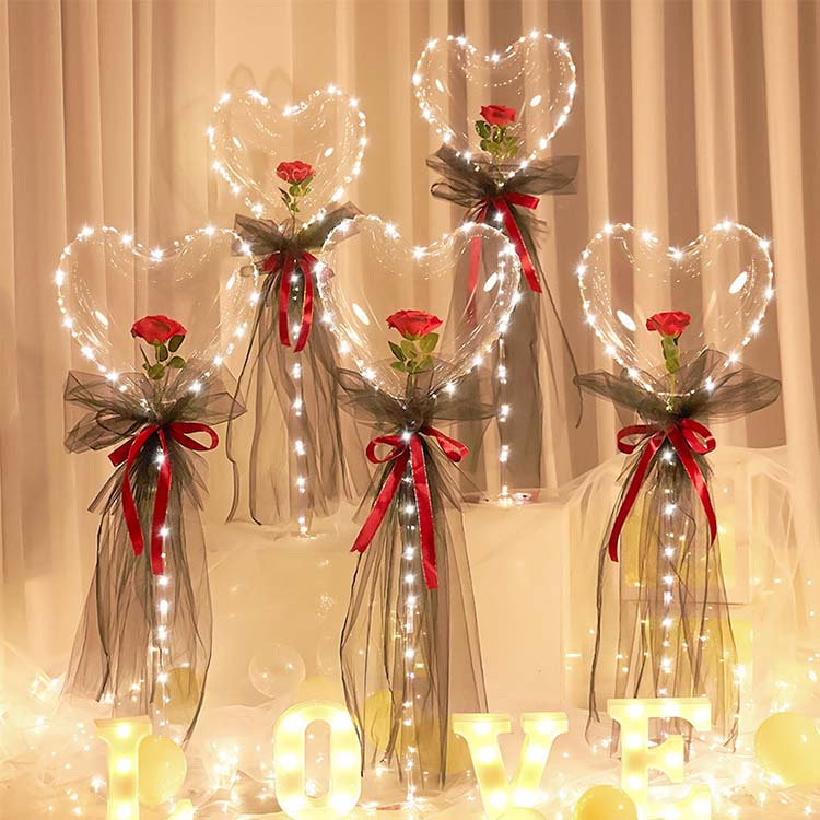 Декоративные аксессуары: обычно,Сердце в форме бобо роз наборысопровождаются некоторыми украшениями, такими как кружевная пряжа, легкие полосы, воздушные насосы, батареи и т. Д. Кружево может быть обернуто вокруг мяча и розы, добавив в целое плавную и романтическую атмосферу; Полоса может излучать мягкий свет ночью или в тусклых условиях, что делает весь наряд более мечтательным и очаровательным.