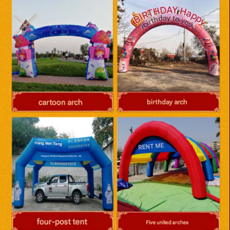 Размер и форма: доступны в различных размерах и дизайне - классические изогнутые арки, пользовательские формы (такие как логотипы, персонажи мультфильмов), двойные надувные арки или тематические стили (свадьба, спорт, фестивали).