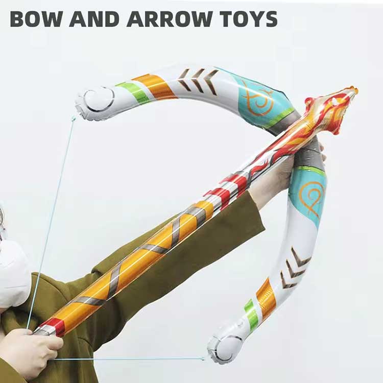 Наборы надувных игрушек с луком и стрелами мягкие и надувные, а не твердые стрелы, поэтому они не причинят вам вреда, если попадут в вас. С ним очень безопасно играть детям.