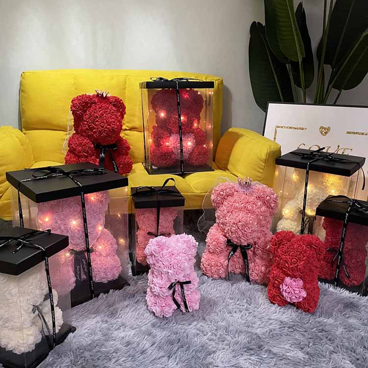 Самая большая особенность бессмертного розового медведя состоит в том, что он сделан из имитационных роз с специальными технологиями, которые сохраняют естественную красоту настоящих цветов, в то время как обычные плюшевые игрушки являются общими и распространенными, не такими привлекательными. Кроме того, бессмертный розовый медведь имеет более высокую ценность сбора и эмоциональную значимость.