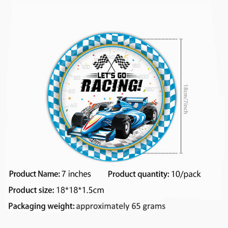 ГонкиТематическая обеденная тарелкаОсновное тело изготовлено из картонного материала 250 пищевых продуктов, который устойчив к падению и удобству использования. Если он падает на землю случайно, он не сломается или не будет поврежден, что значительно продлевает срок службы тарелки. Это очень подходит для ежедневного использования в семье, особенно для семей с детьми. Поверхность картона гладко и легко чиститься. Просто промойте водой или протрите ее просто для того, чтобы легко удалить пятна, принося пользователям удобный опыт работы.