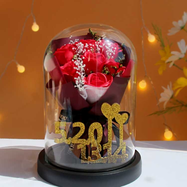 Этот стеклянный букет роз создан для того, чтобы цветы не увядали, а розы внутри не увядали. Букет очень правдоподобен, почти отличим от настоящих цветов и прекрасно передает красоту букета. Внутри золотые цифры 520+1314 представляют собой цифры 520 и 1314, символизирующие любовь и подчеркивающие продуманность этого подарка.