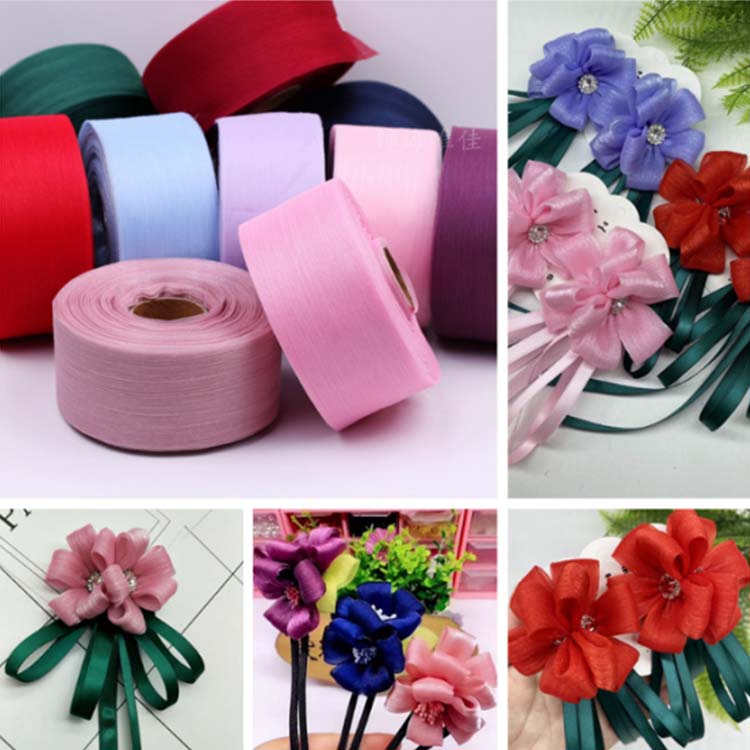 Наша лента из пряжи изготовлена путем переплетения нейлона высокой плотности, который обладает высокой эластичностью. Имеет матовую поверхность с определенной степенью матового эффекта. Он поставляется в различных цветах на выбор. Цвета яркие, не выгорают под воздействием воды. Он также не имеет раздражающего запаха. Может использоваться для упаковки подарков или в качестве украшения. Его можно использовать для украшения подарочной коробки, праздника, упаковки букетов, головных уборов и т. д.